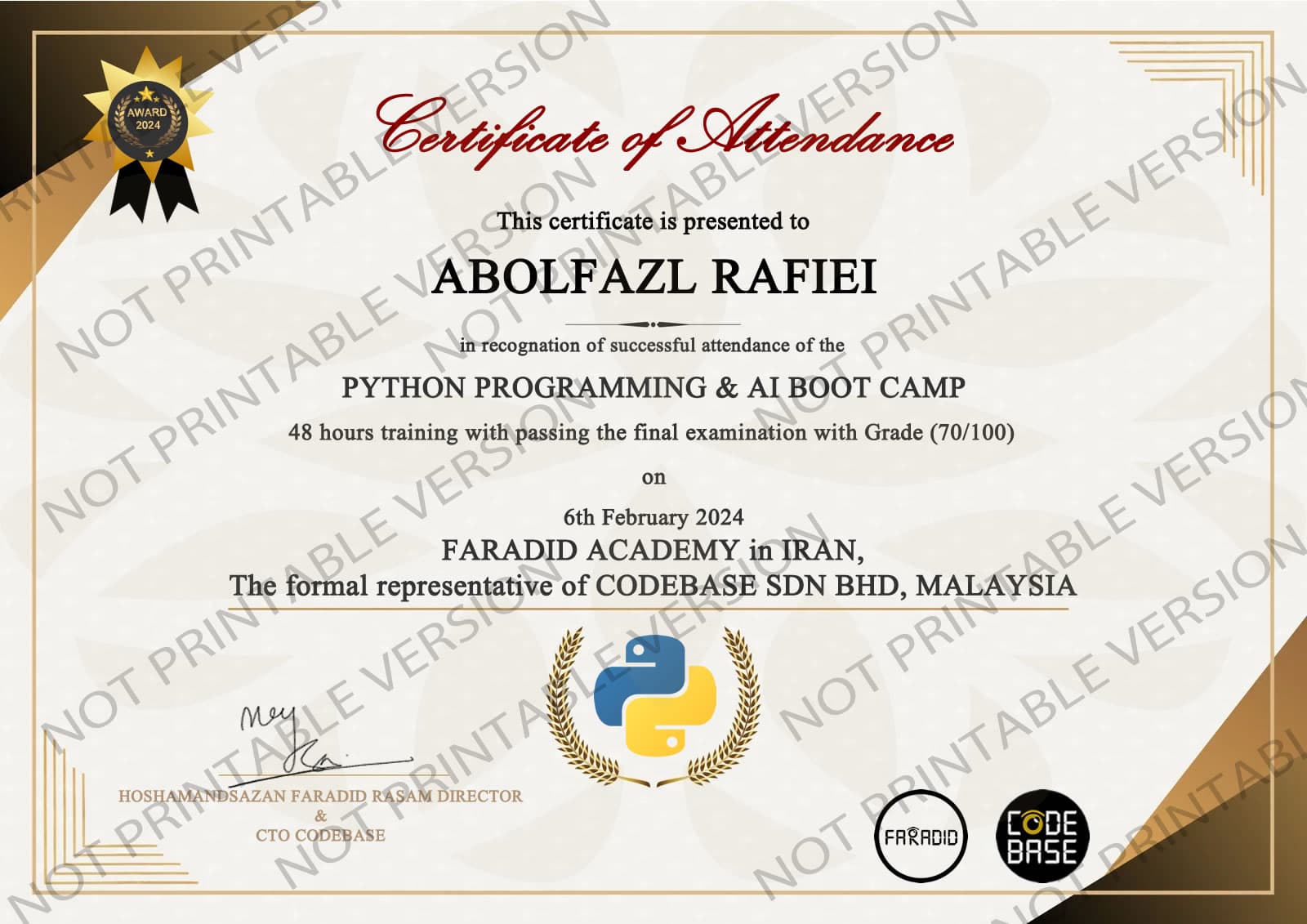 مدرک پایان بوت کمپ آموزشی دوپینگ پایتون و هوش مصنوعی مقدماتی